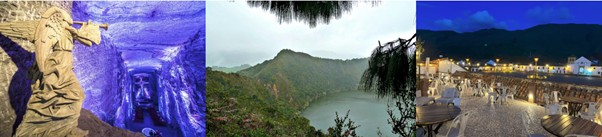 Beyond the metropolitan area, the surroundings of Bogotá offer a wide variety of unique destinations. Close to the city, on the north side, is the town of Zipaquirá, home to the Salt Cathedral, an extraordinary underground Roman Catholic church built inside the tunnels of an old salt mine 200 meters below ground. There is also the colonial town of Villa de Leyva, with its huge cobbled square and nearby paleontological sites, or the legendary Guatavita Lake, a sacred place in the legend of El Dorado.